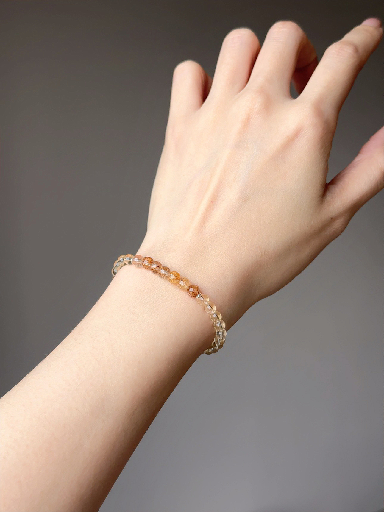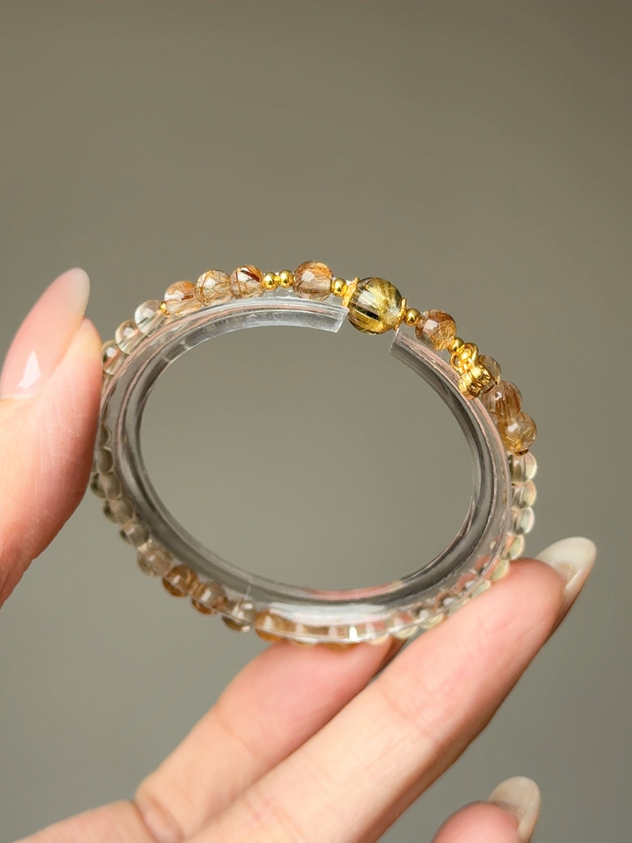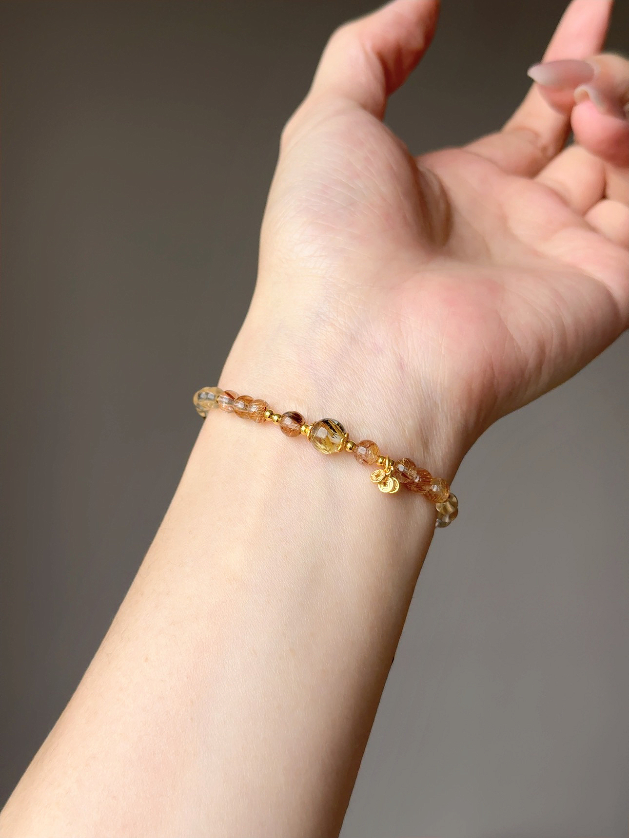 這是 「日常極細的精緻,與核能級的財富爆發力」。黃水晶如涓涓細流,為你注入喜悅的財富頻率;而銅髮晶內部的爆閃金屬絲,則是強效的「除障馬達」,能斬斷你事業上的阻力與小人,賦予你雷厲風行的執行力。