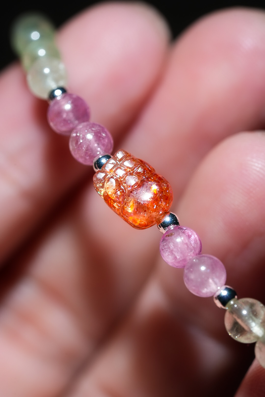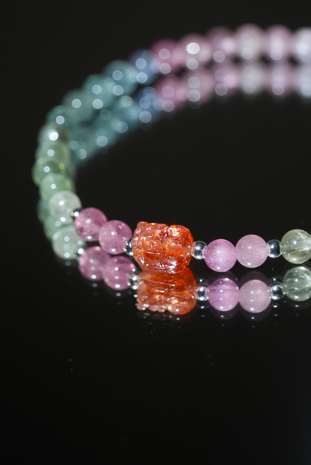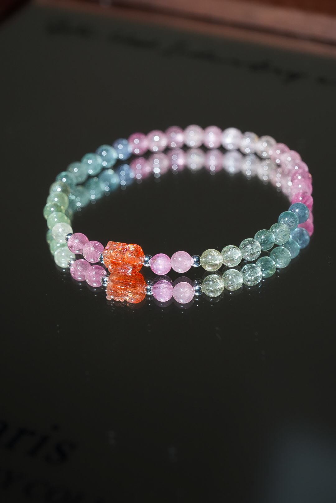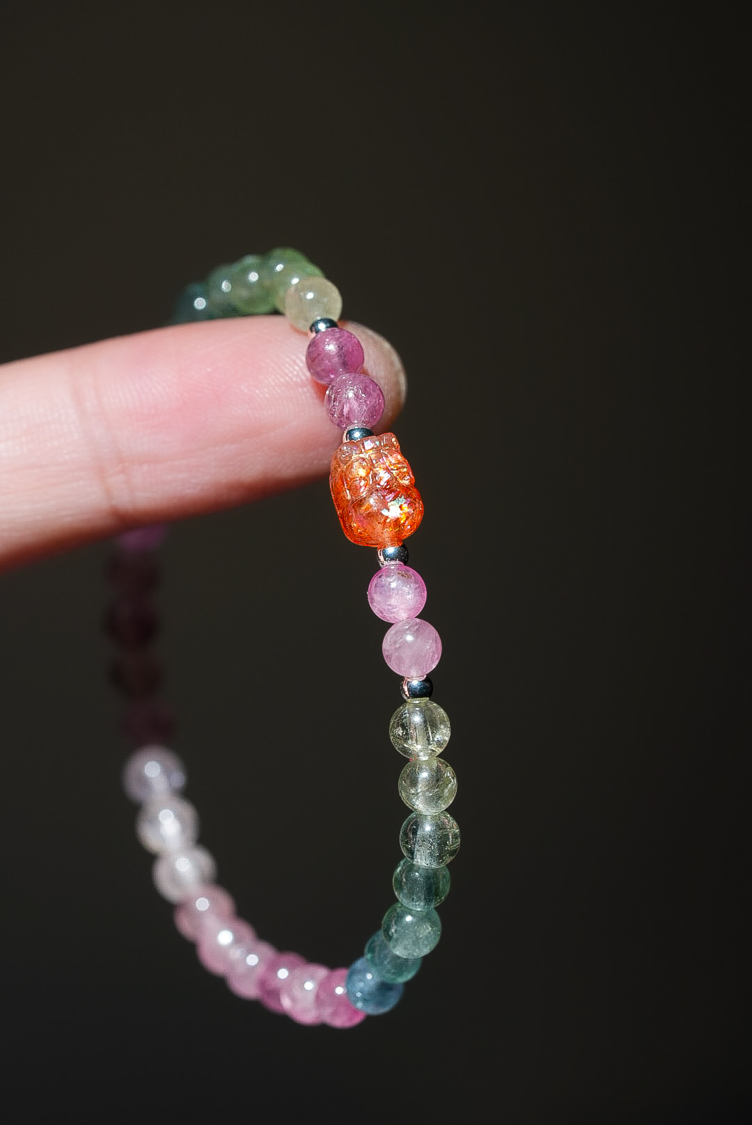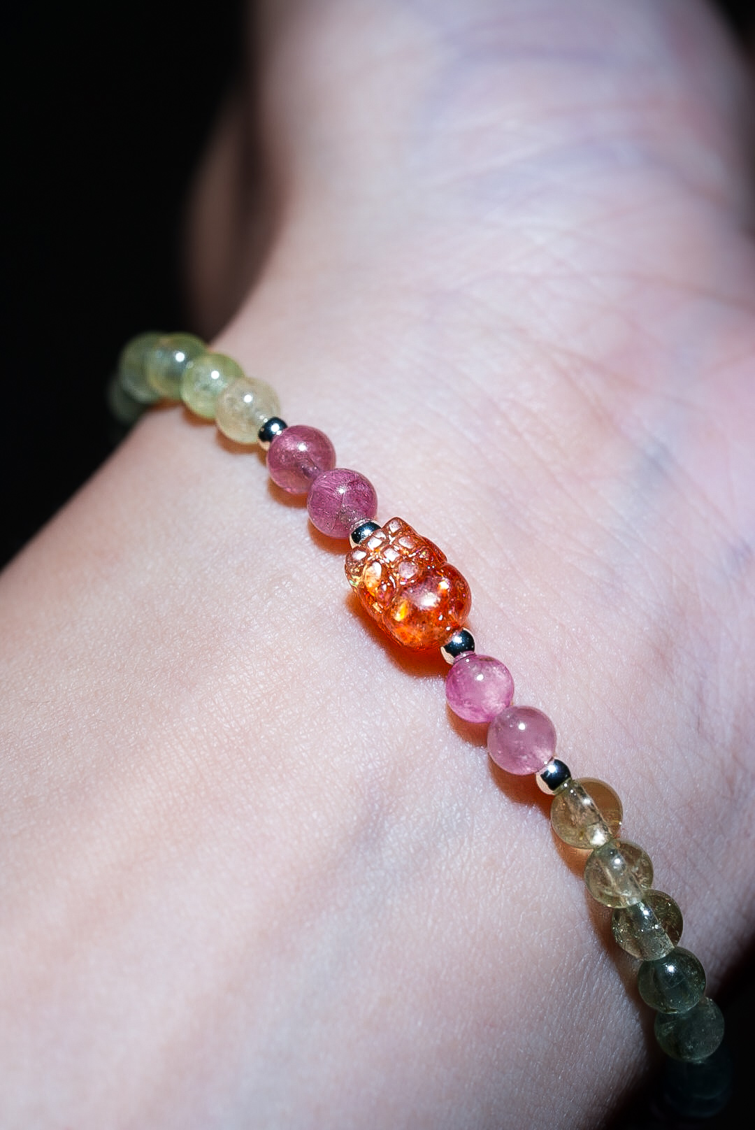 碧璽是自然界中極少數自帶微電流的寶石,祂是最好的「靈魂疏通器」。 紅碧璽招人緣、綠碧璽招正財、黃碧璽招偏財、黑碧璽擋煞避邪。 當你覺得生活各方面都「卡卡的」、充滿無力感時, 這道戴在手腕上的彩虹,能溫柔且強大地打通你全身停滯的脈輪, 幫你清理掉深層的精神內耗,將你的磁場調整到最容易接收好運的頻率。