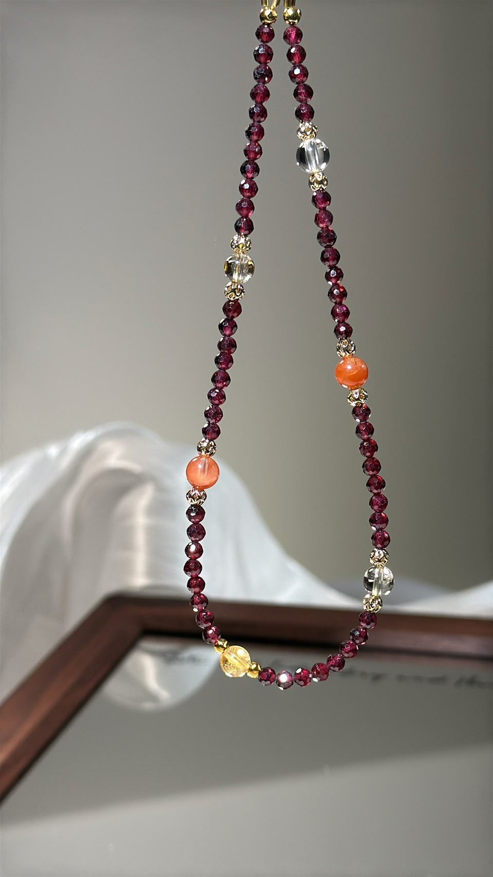 ☪ 規格 Specs 天然石榴石、鈦晶、紅兔毛、白水晶、黃水晶 堅固手機掛繩設計 (輕盈小巧,點亮機身)