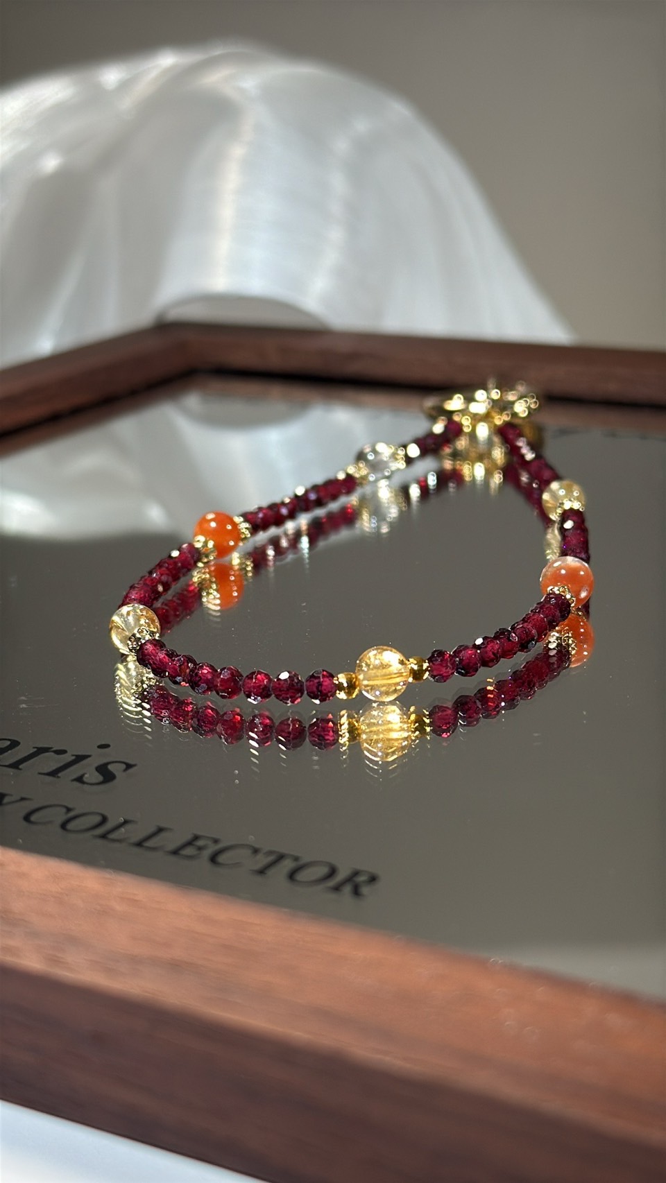 ▌ 石榴石 𝘹 紅兔毛(Garnet & Red Rabbit Hair)|魅力的補光燈 專屬女性的「氣色維他命」。 石榴石深紅如酒,促進能量流動,讓妳不化妝也自帶紅潤;紅兔毛柔軟如絲,增強自信與女性魅力。它們負責幫妳「柔化氣場」,讓妳在通話或社交軟體上,更具親和力與吸引力。