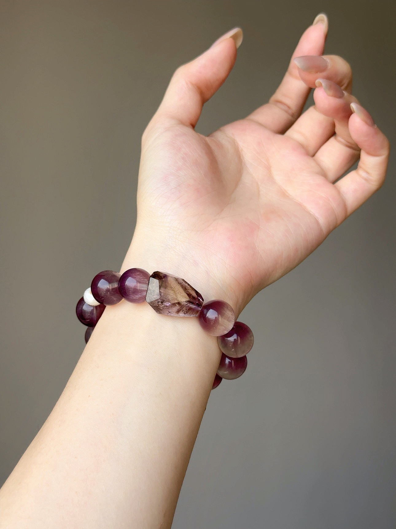 半盆拉絲紫螢石則如同靜謐的星空,它負責梳理你混亂的思緒,將那些焦慮與不安過濾,還給你一個絕對清醒且流動的意識空間。