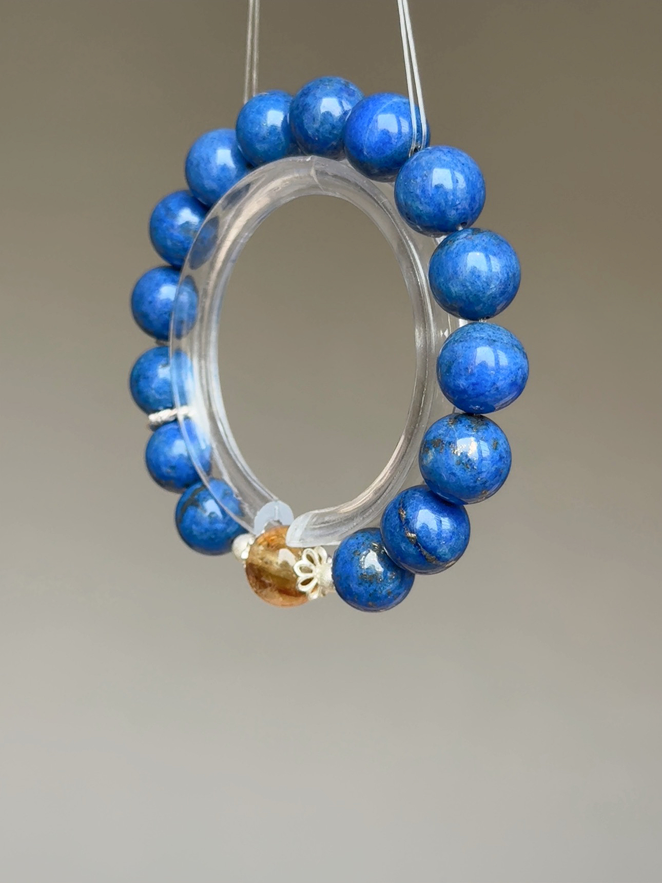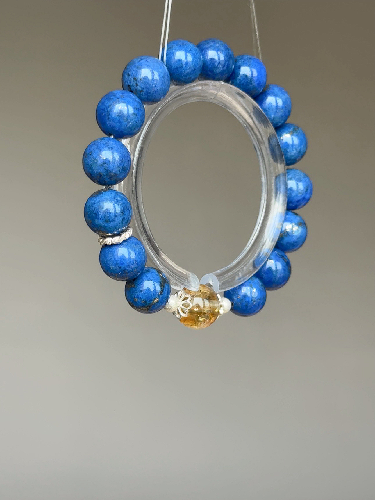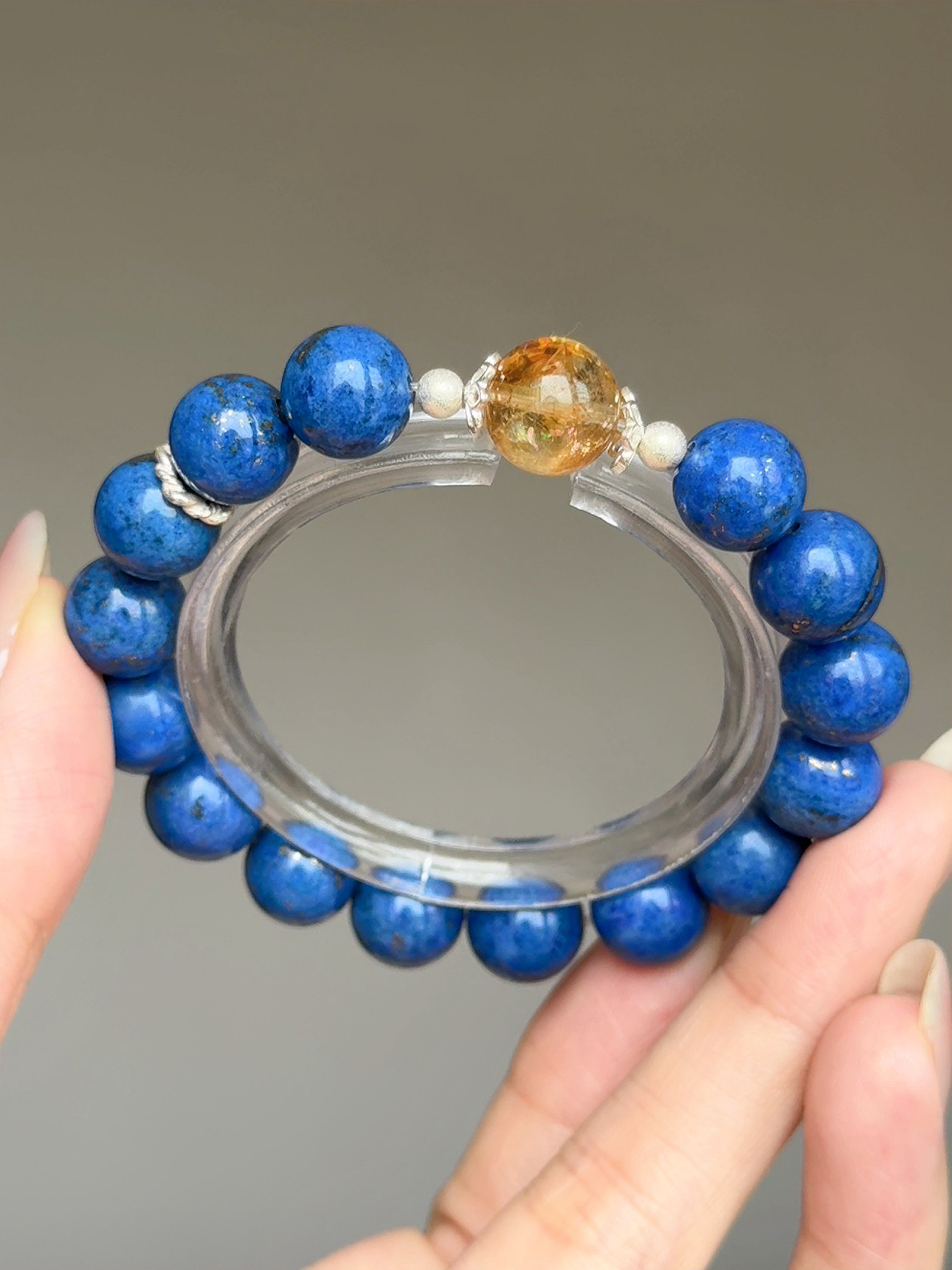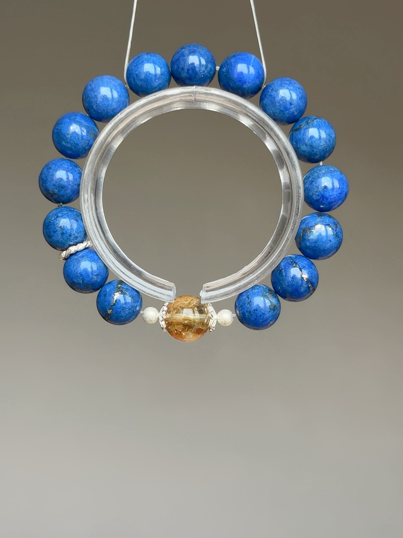 ☪ 規格 Specs: 老礦青金石(近11m)、彩虹黃塔晶(11m)