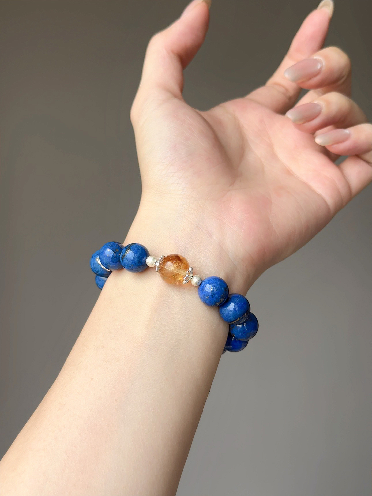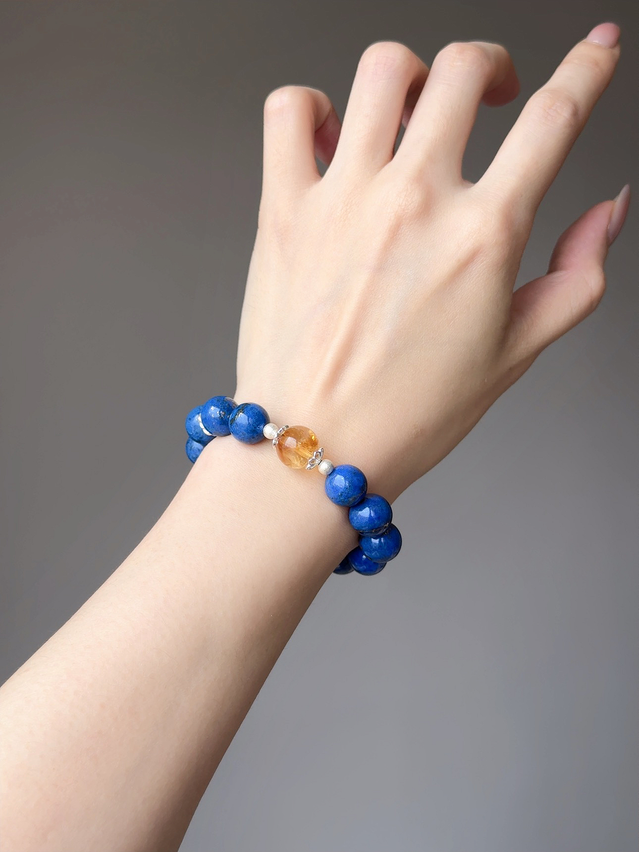 這款設計是我對「理智與顯化」的最高致敬。那顆老礦青金石帶著如夜空般的深藍與點點金星,它負責開啟妳的喉輪與眉心輪,讓妳在複雜的人際博弈中,依然能精準且平穩地說出最具分量的決策;