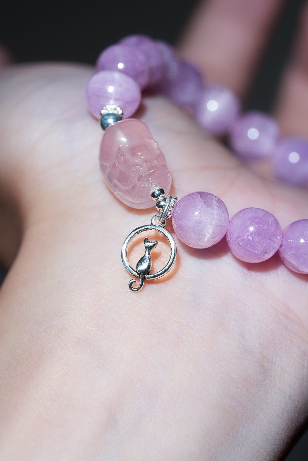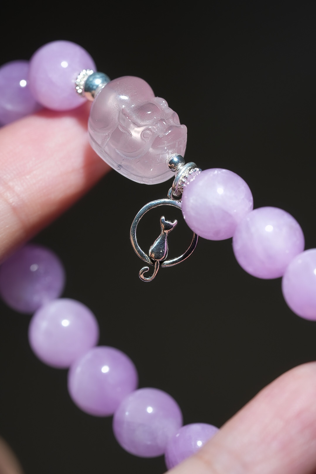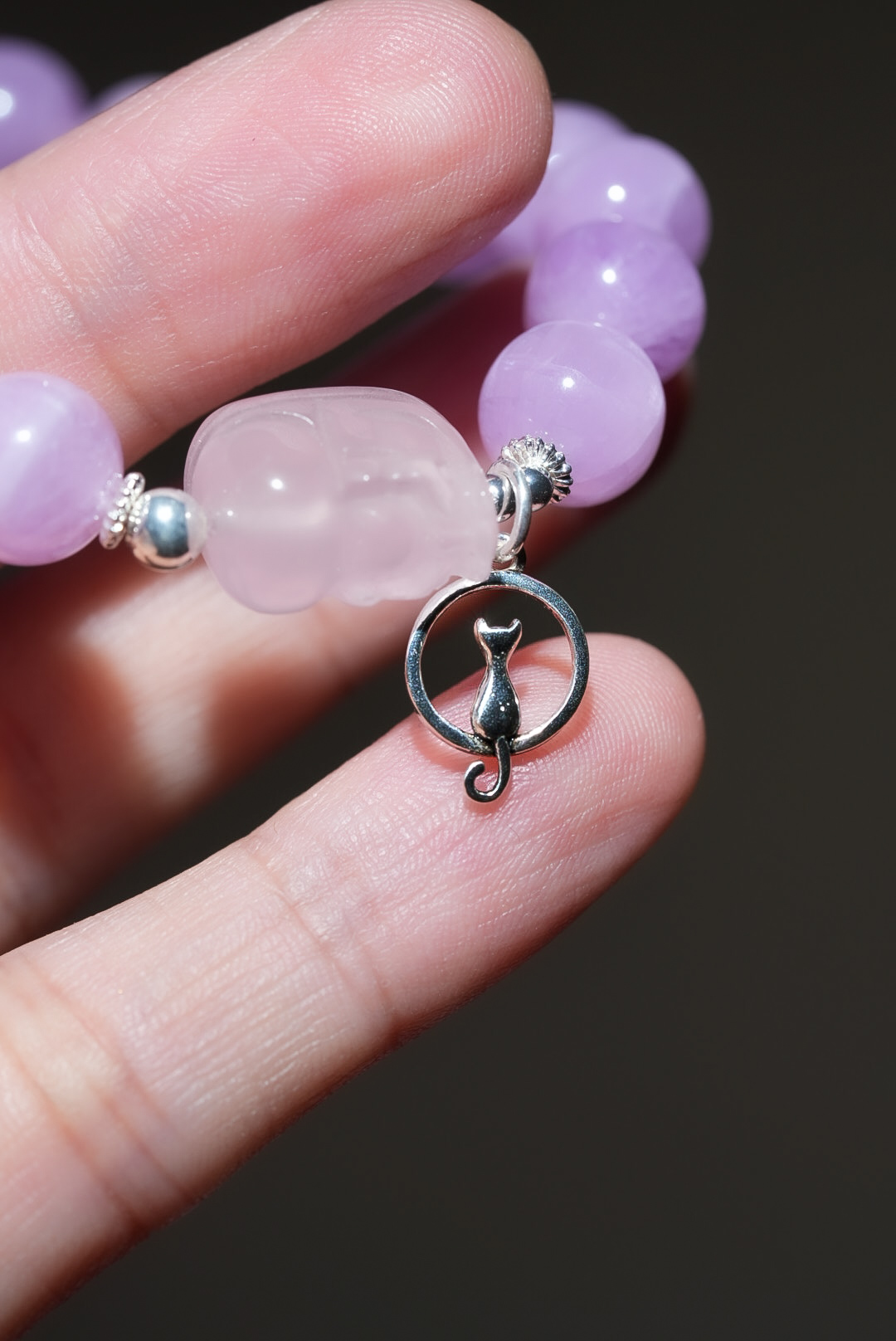 這串手鍊是專為「重整內心秩序」而生的夥伴。貓眼紫鋰輝如同月光下粼粼的微波,能溫柔地撫平焦慮,讓你在紛亂的社交中找回處變不驚的底氣;