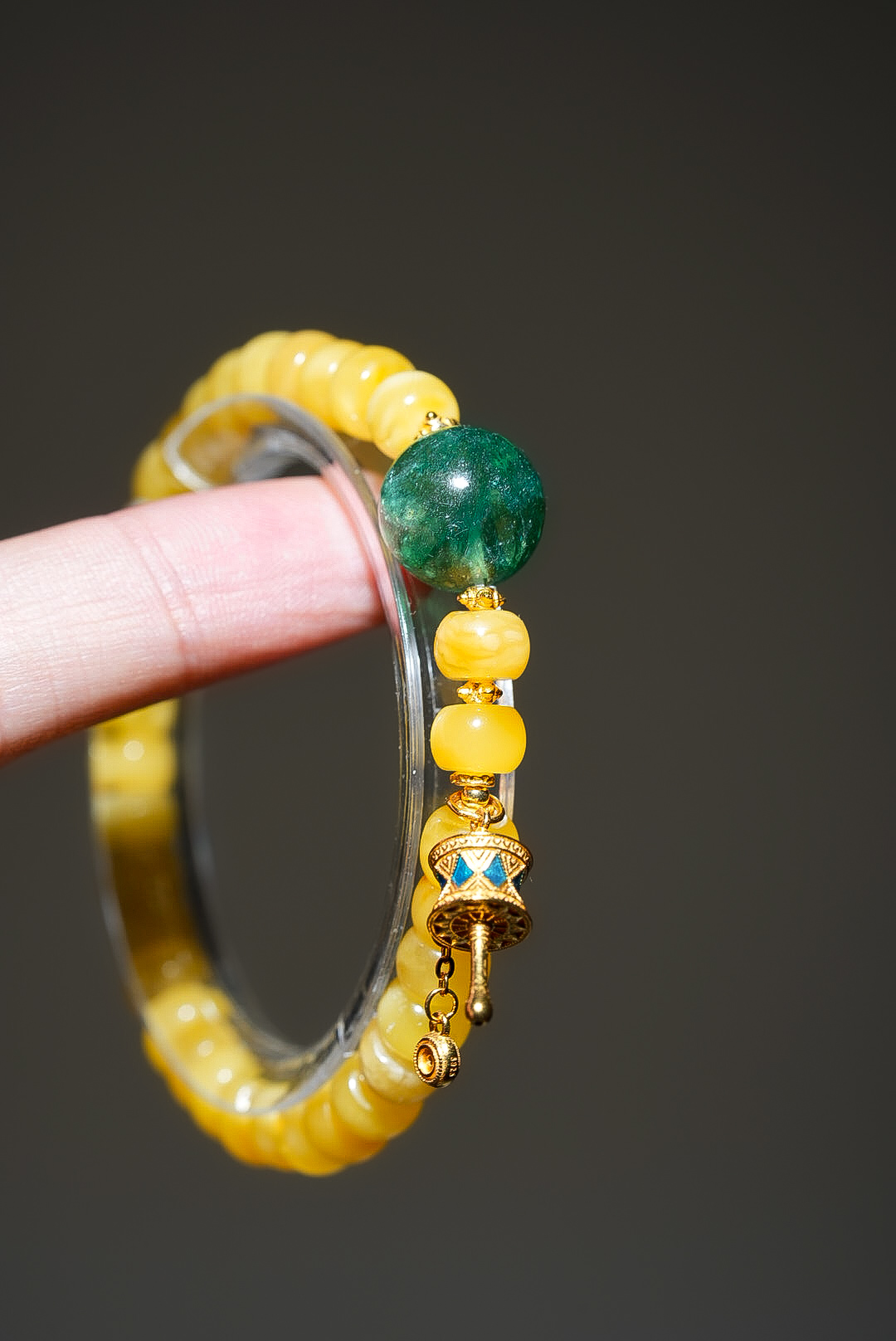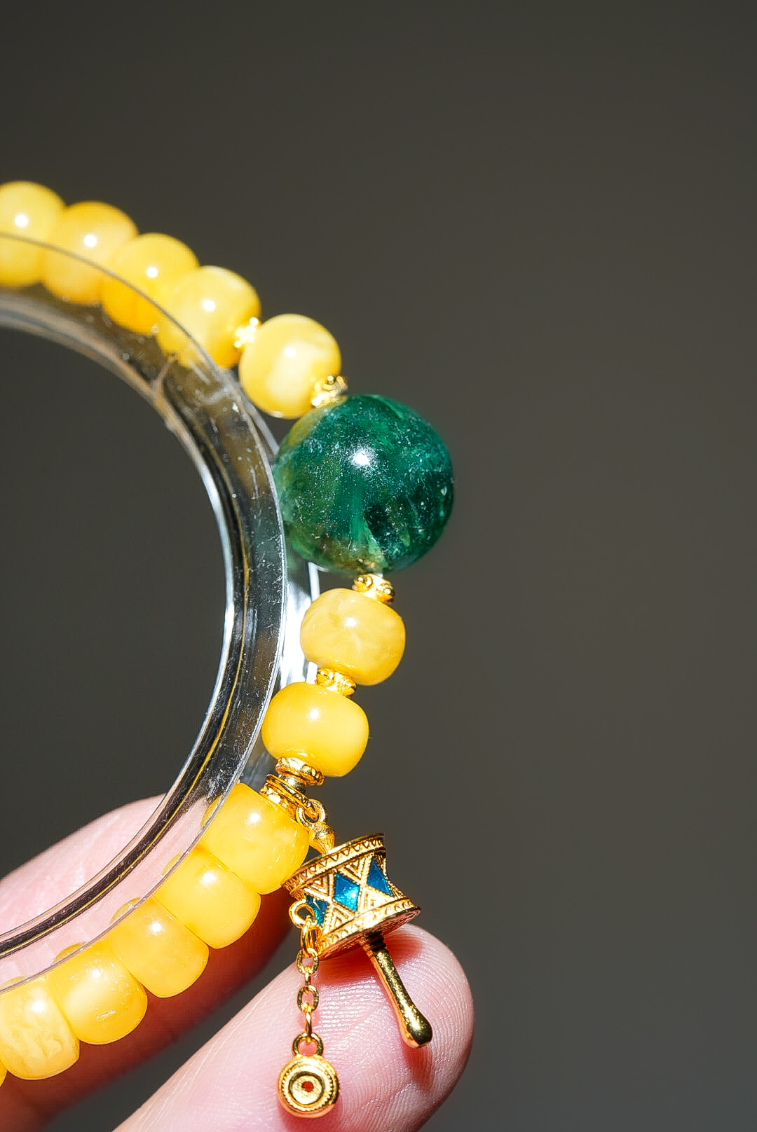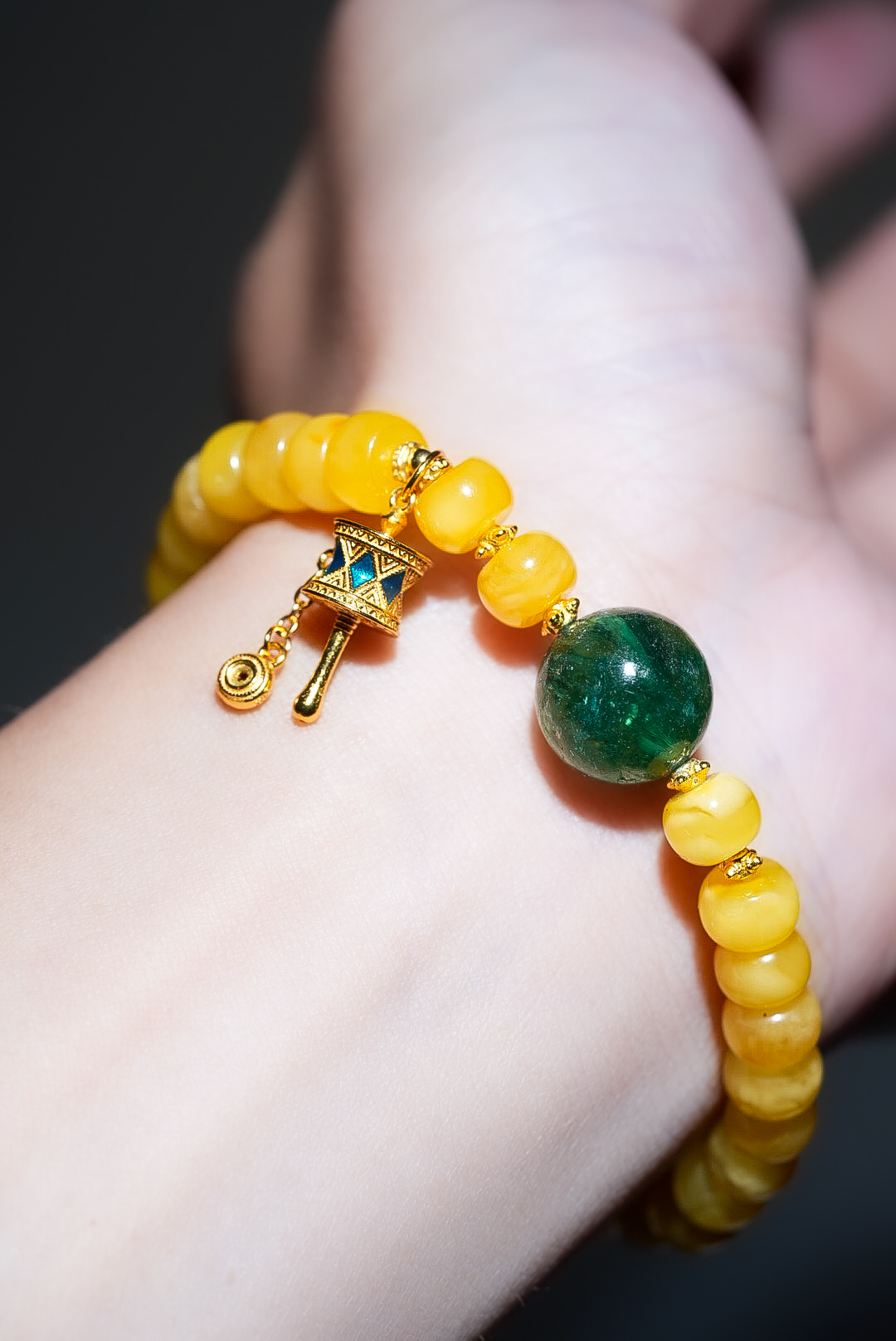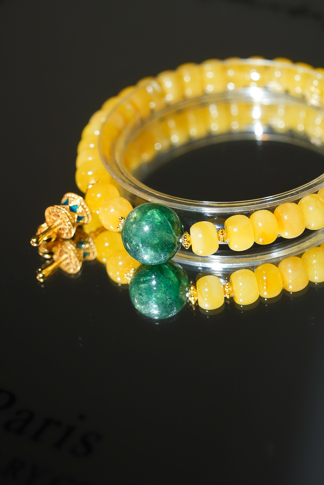 ʚ顯化豐盛財富: 透過綠祖母晶與蜜蠟的共振,告別匱乏感與不安全感,讓你的磁場調整至與豐盛、機會同頻的狀態,吸引優質的正財機遇。
