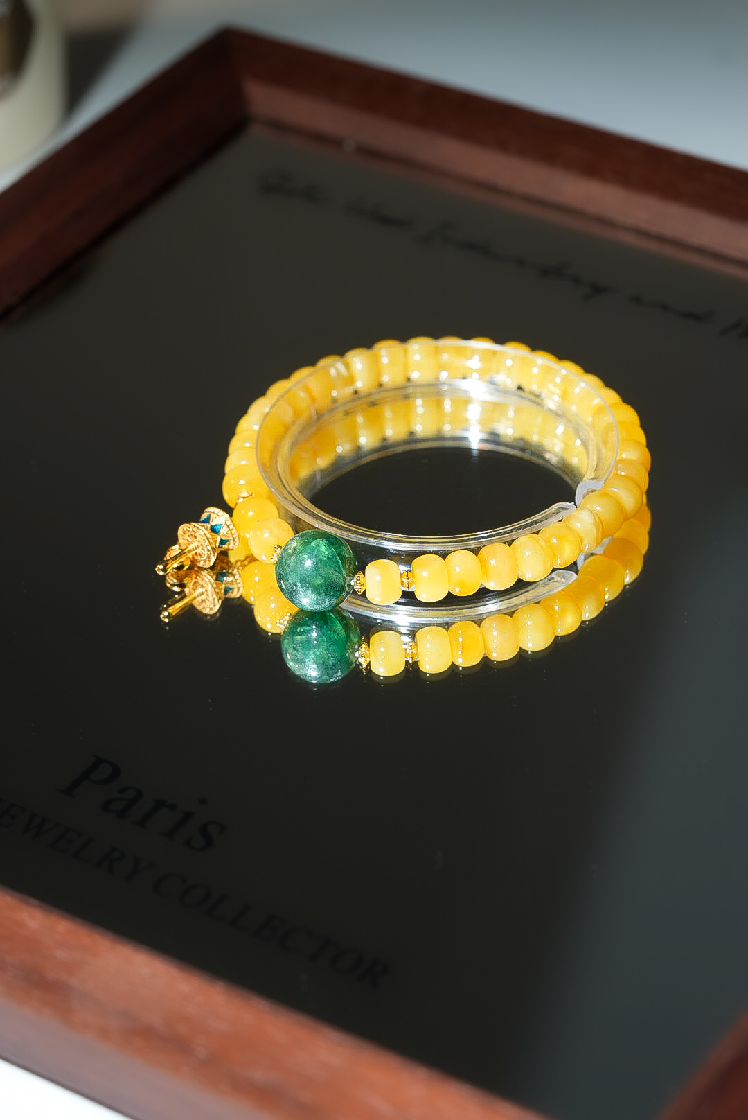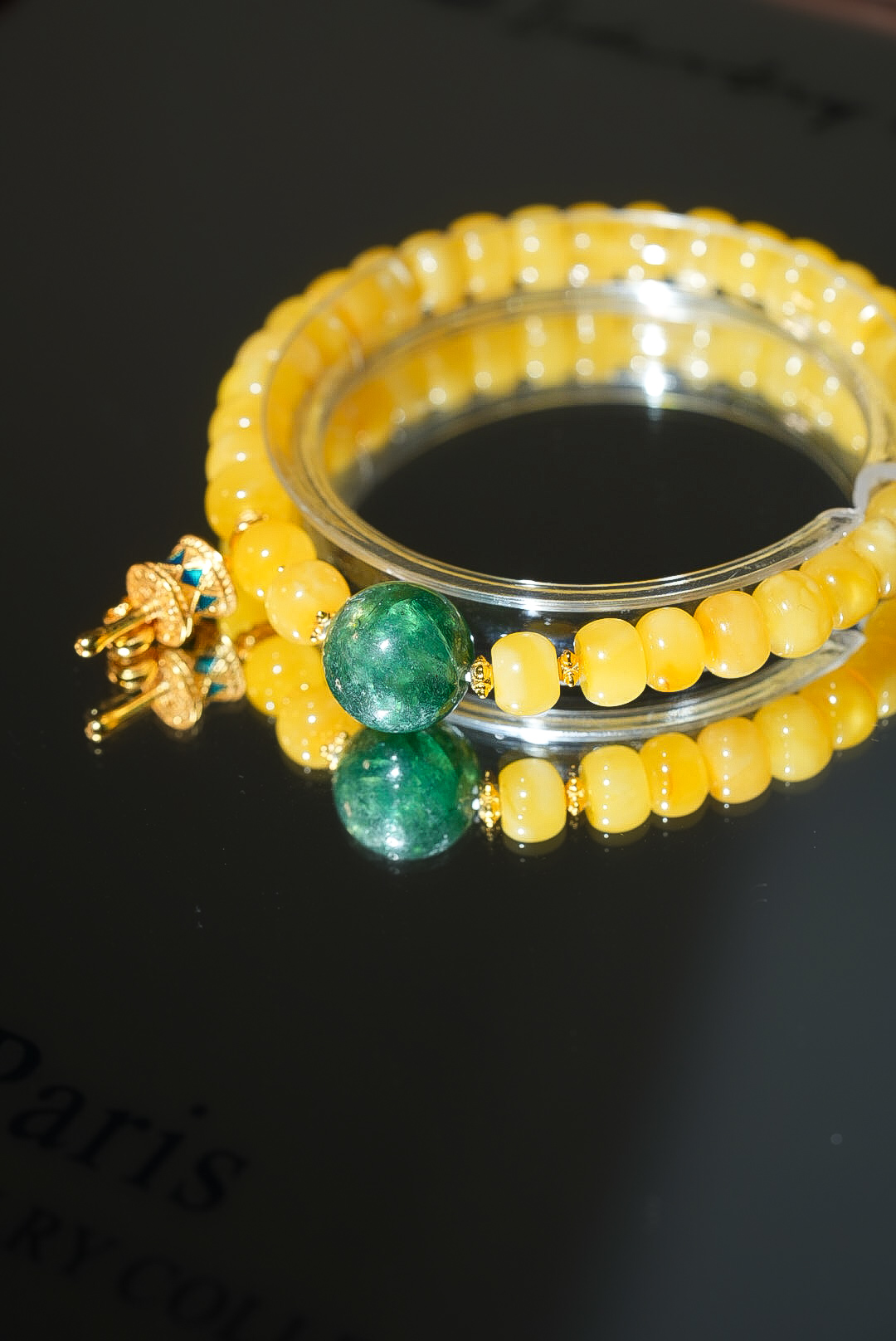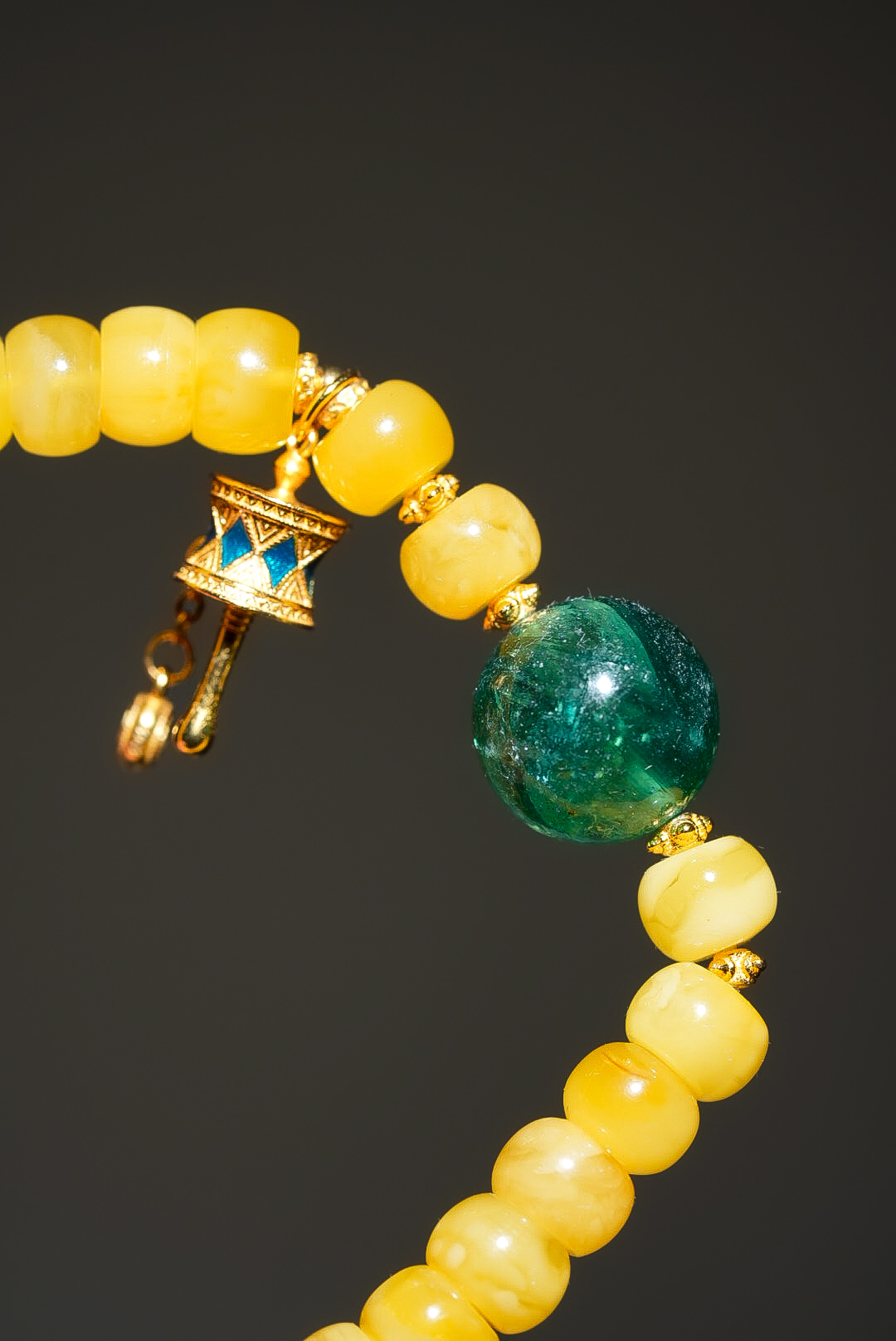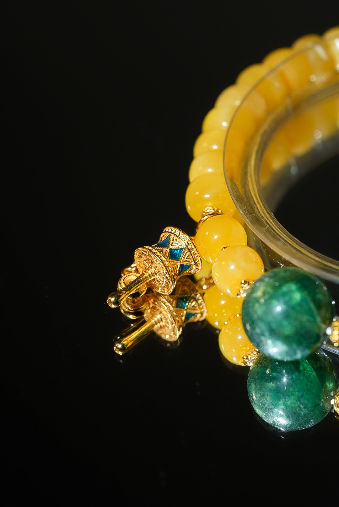 ʚ顯化豐盛財富: 透過綠祖母晶與蜜蠟的共振,告別匱乏感與不安全感,讓你的磁場調整至與豐盛、機會同頻的狀態,吸引優質的正財機遇。