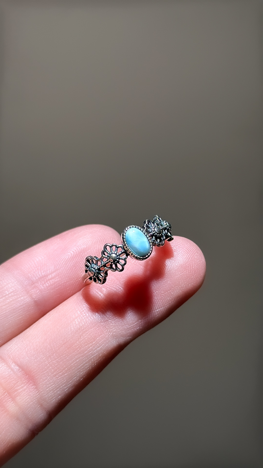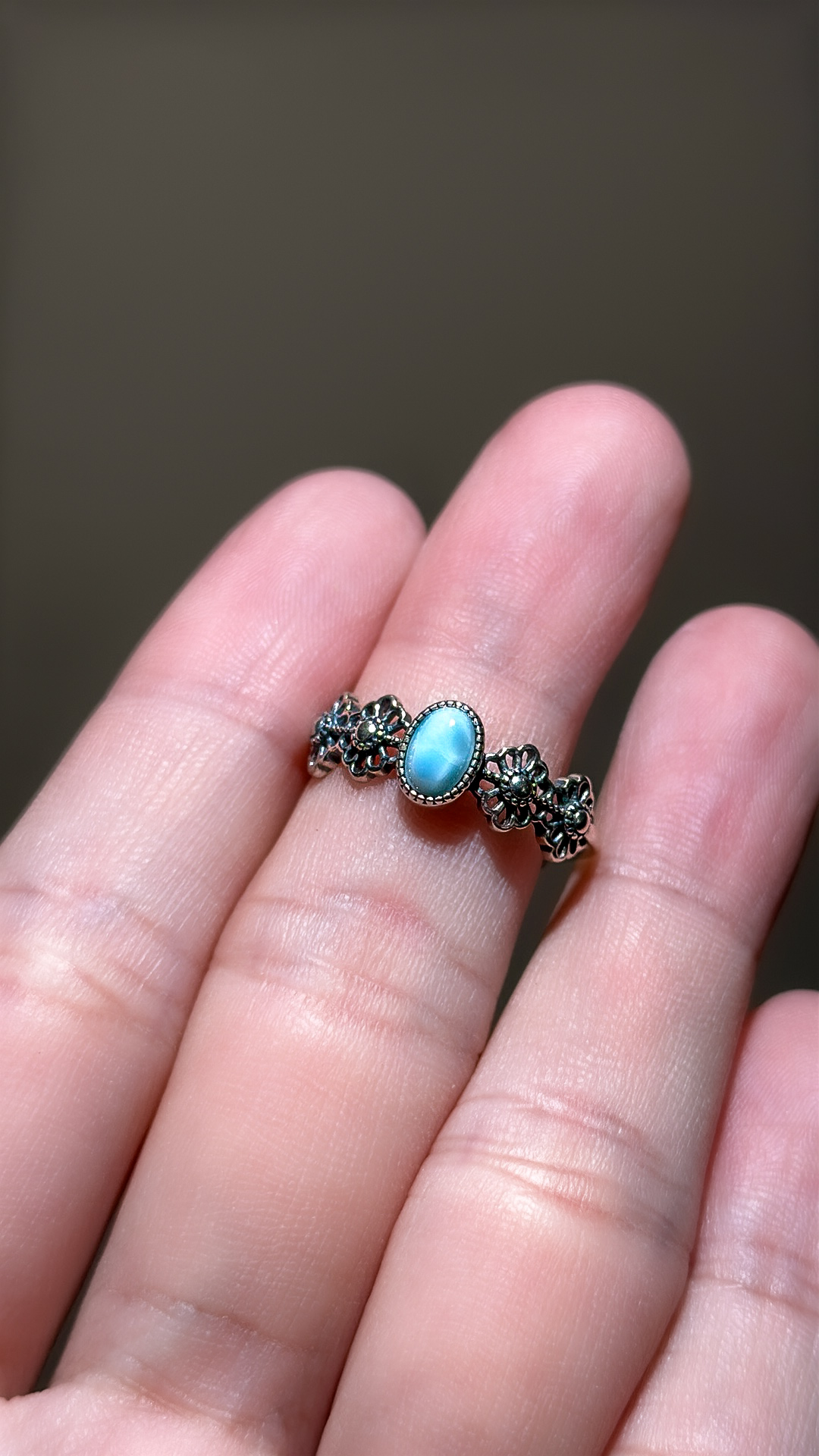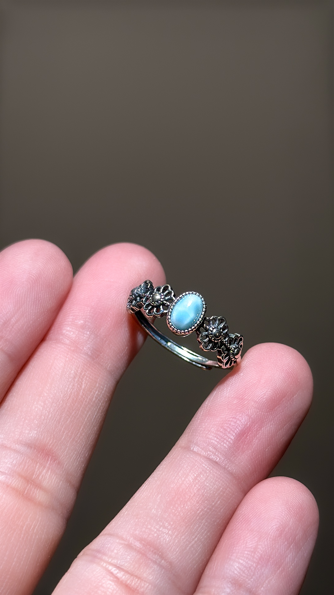 材質:天然海紋石 (Larimar)、S925 純銀戒台