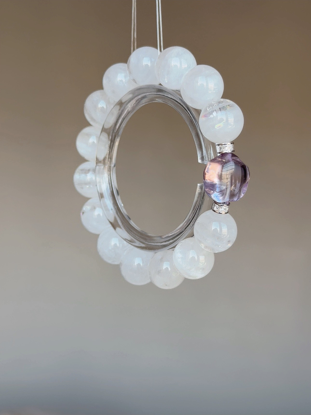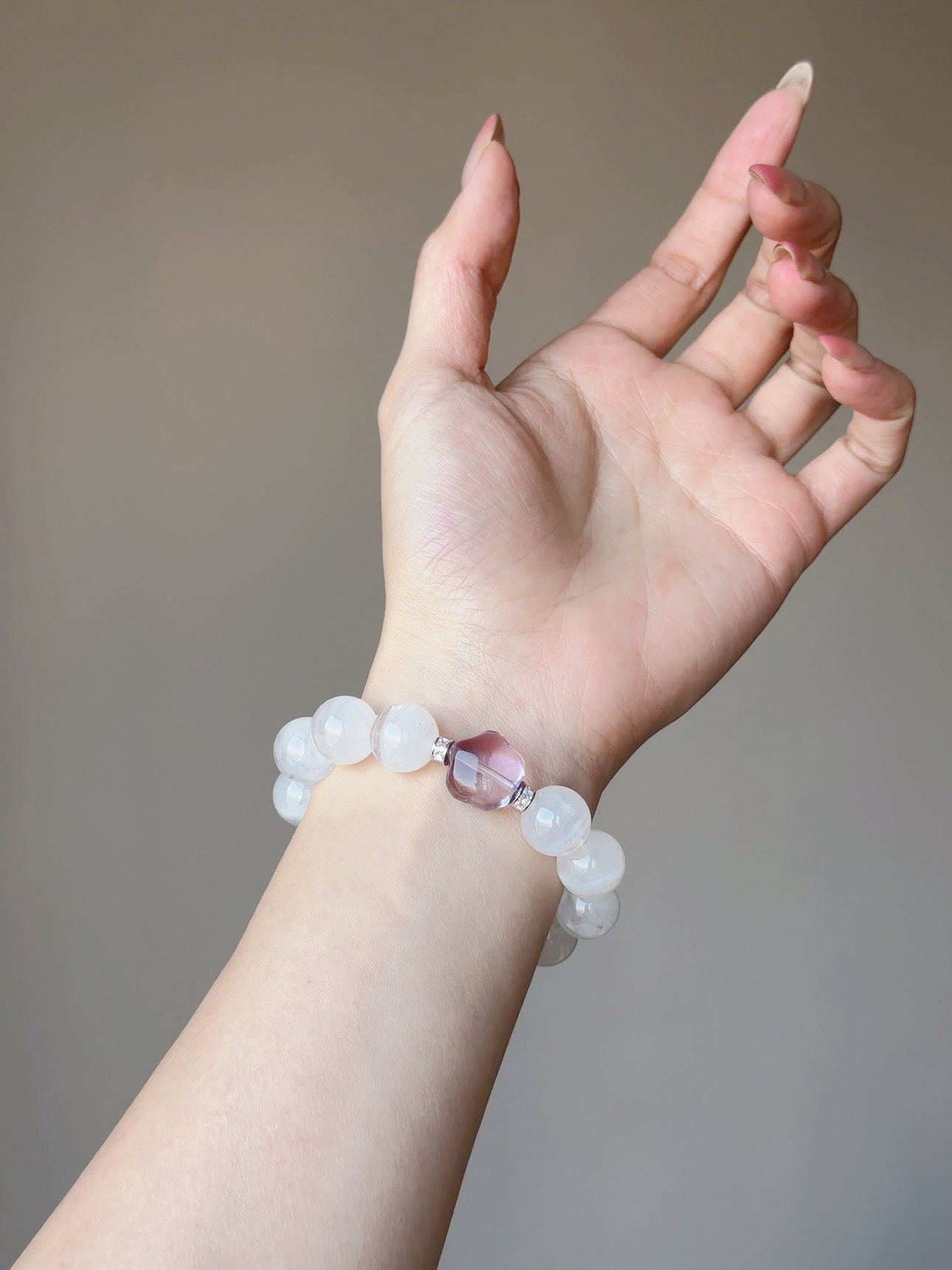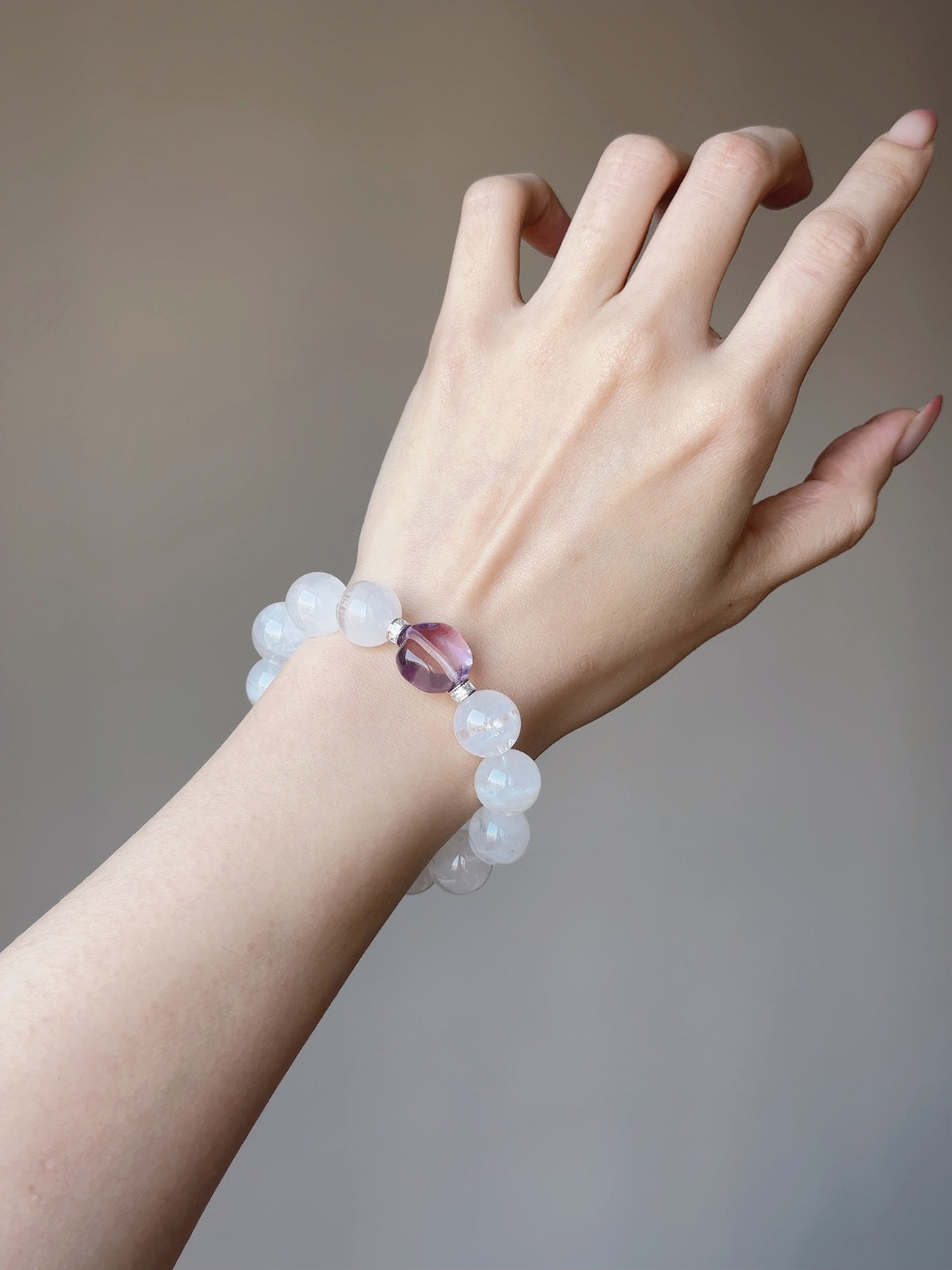 「一個裝滿焦慮的杯子, 是倒不進任何好運的。 這串手腕上的冰透雪白與深邃幽紫, 是妳對磁場的最高級潔癖—— 『我拒絕一切消耗,我只接收最高頻的相遇。』」