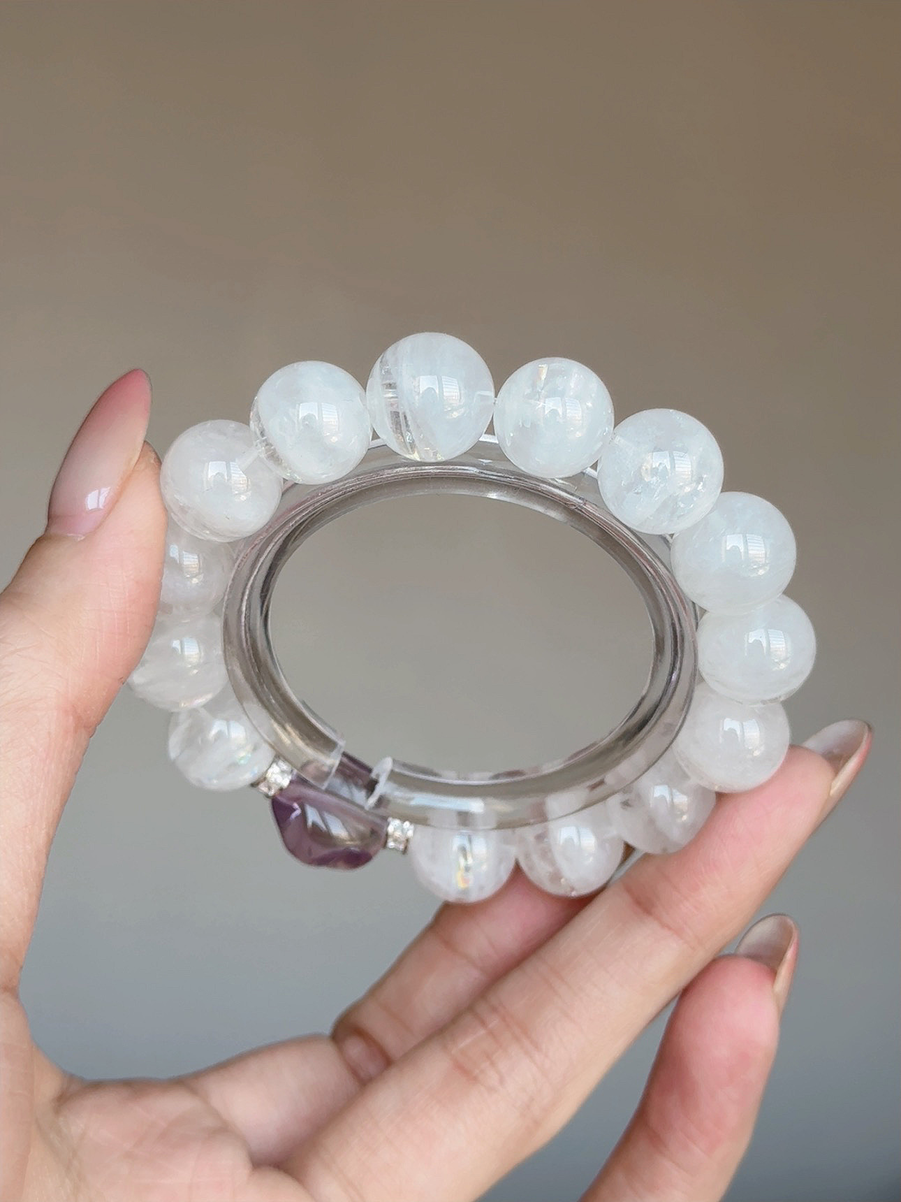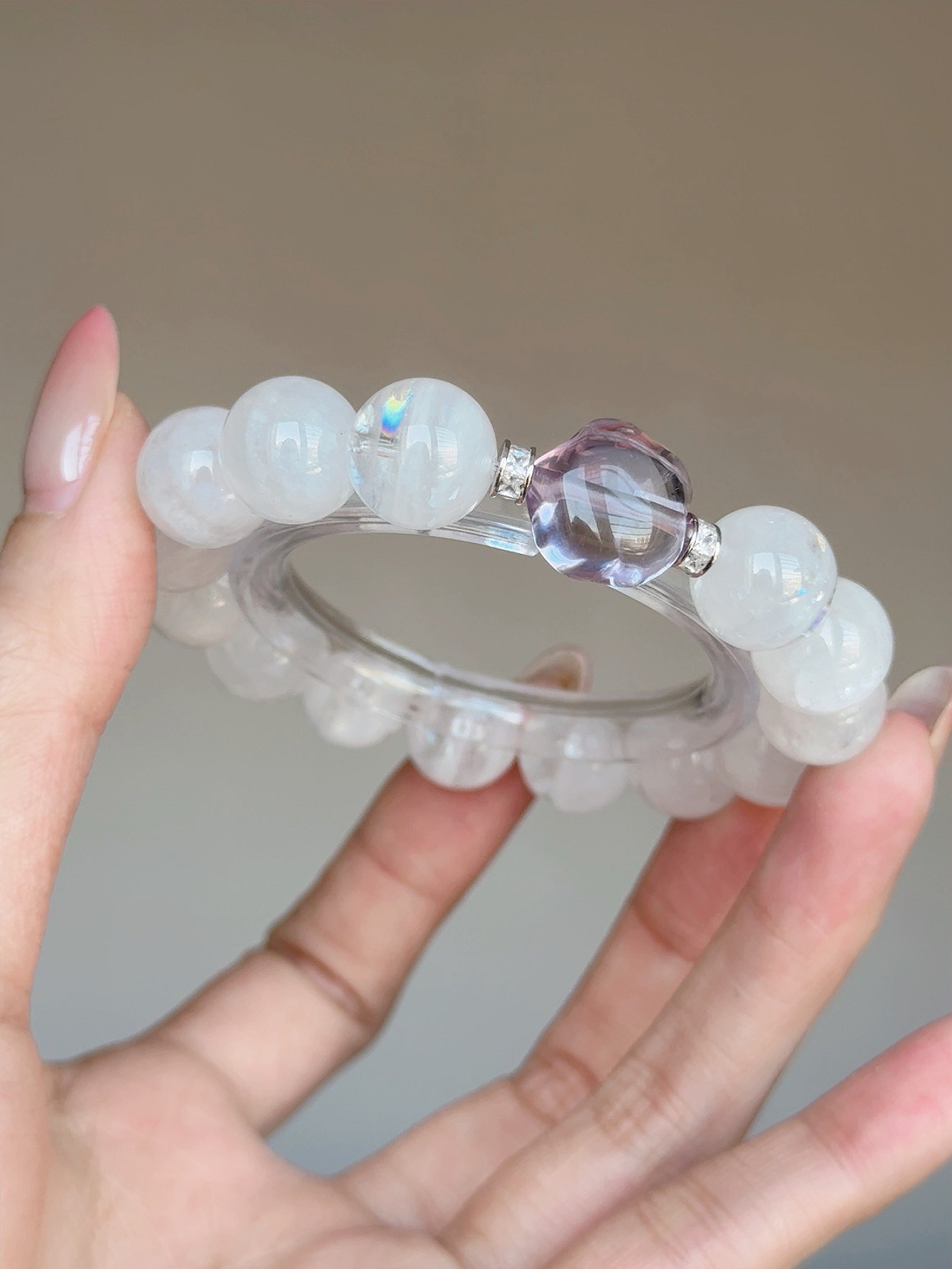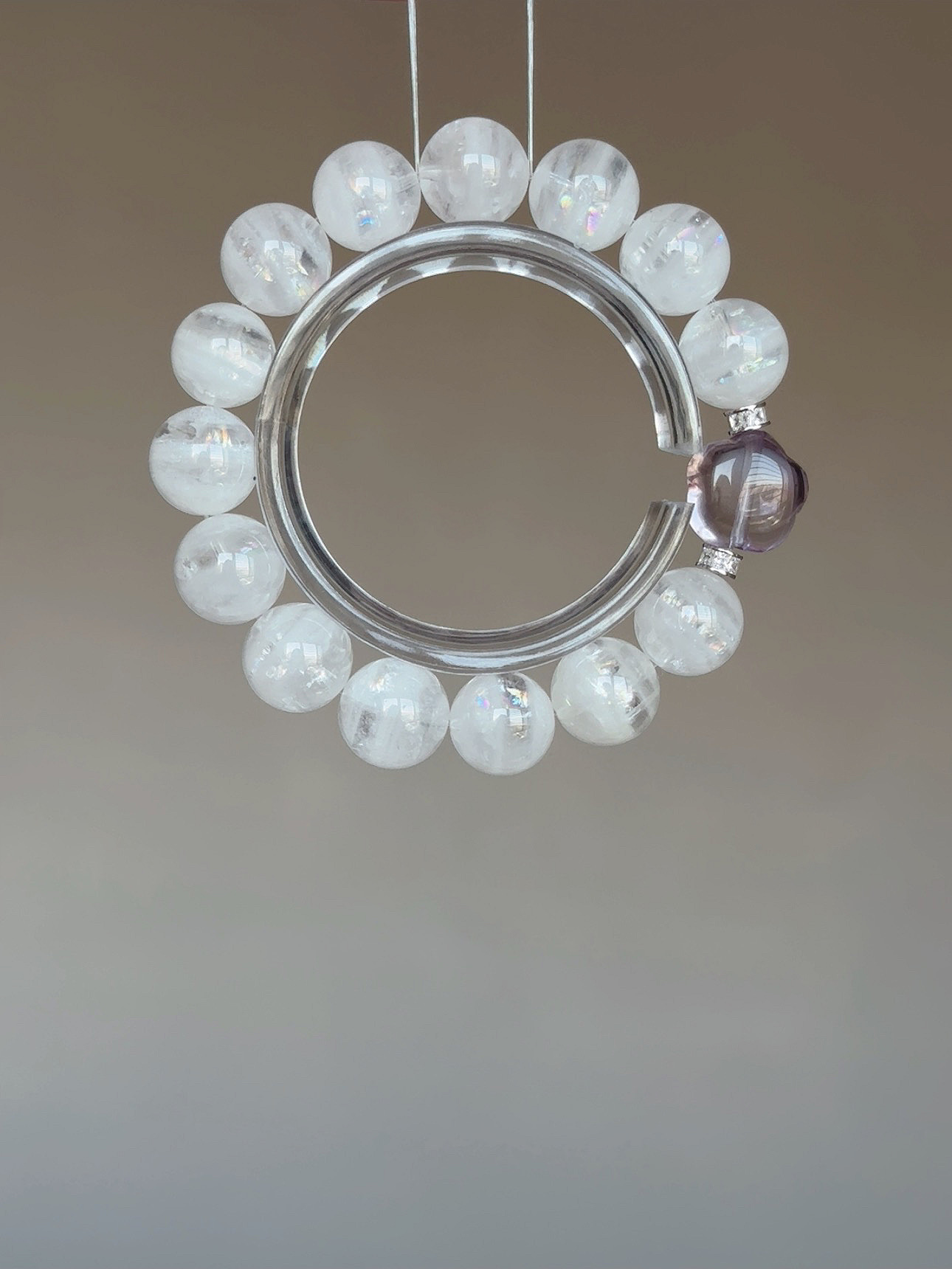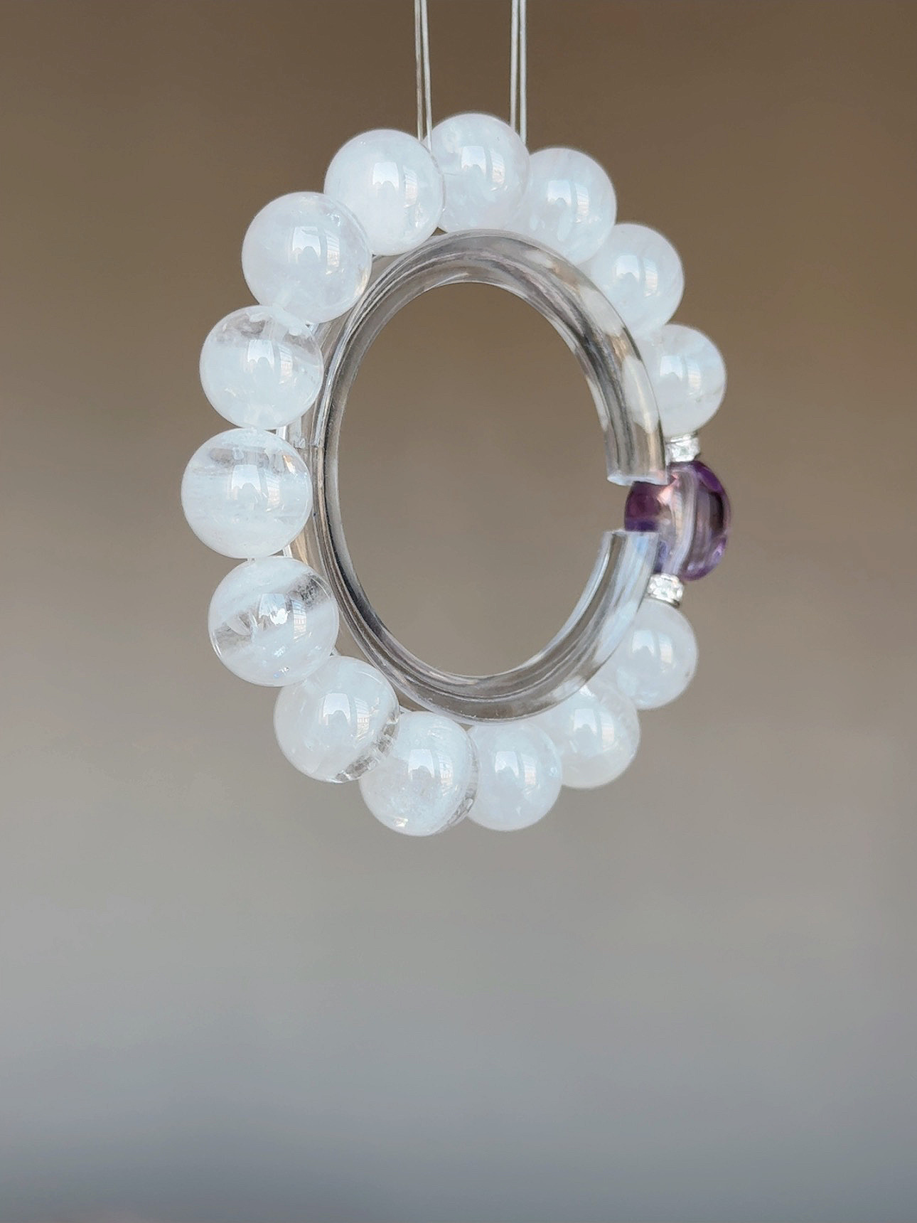 「一個裝滿焦慮的杯子, 是倒不進任何好運的。 這串手腕上的冰透雪白與深邃幽紫, 是妳對磁場的最高級潔癖—— 『我拒絕一切消耗,我只接收最高頻的相遇。』」