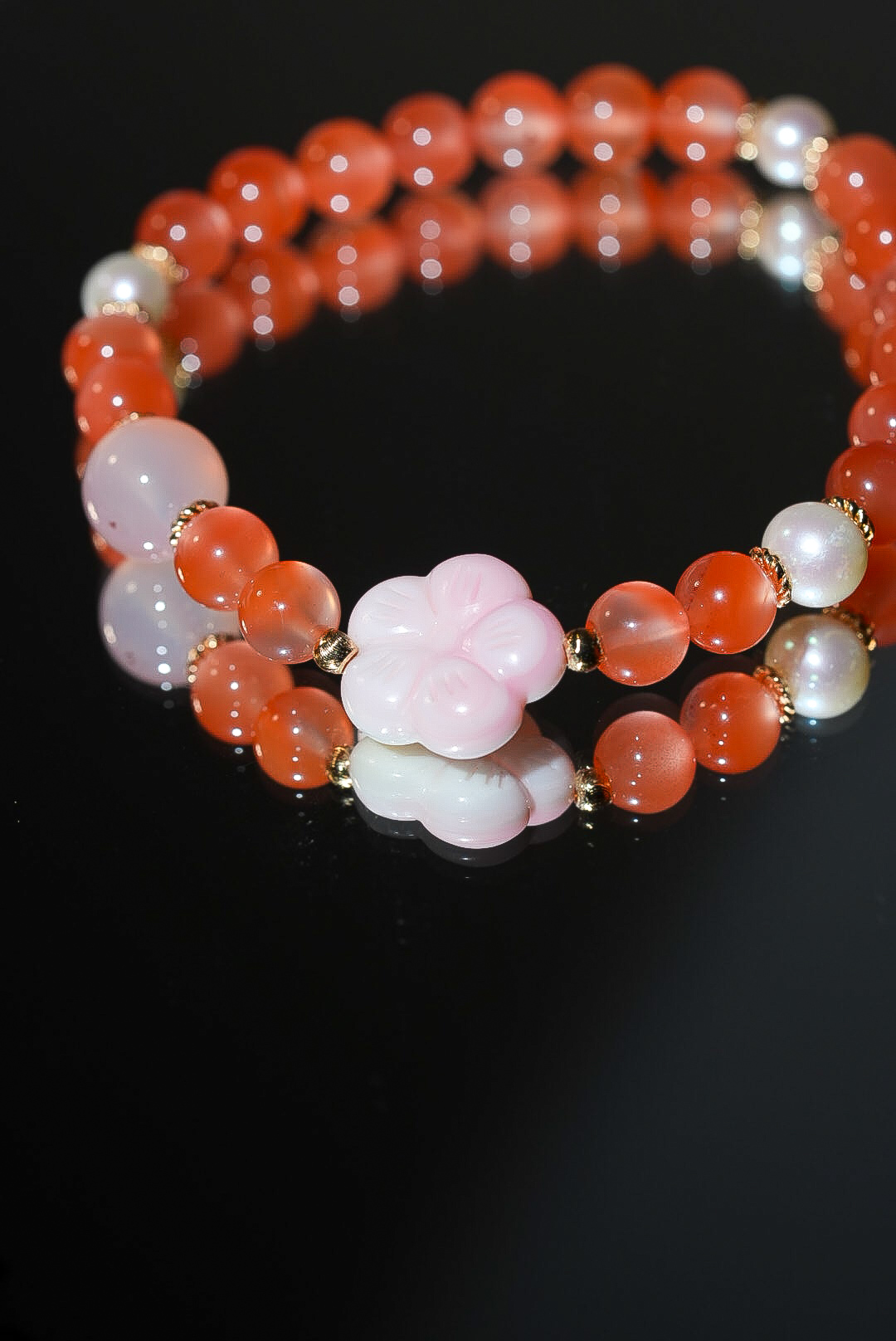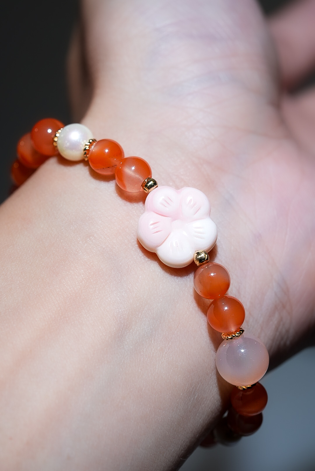 【胭脂雲影.貴人滋養】 Rosa.G 南紅 x 珍珠 x 女皇貝 x 蜜桃鹽源設計手鍊