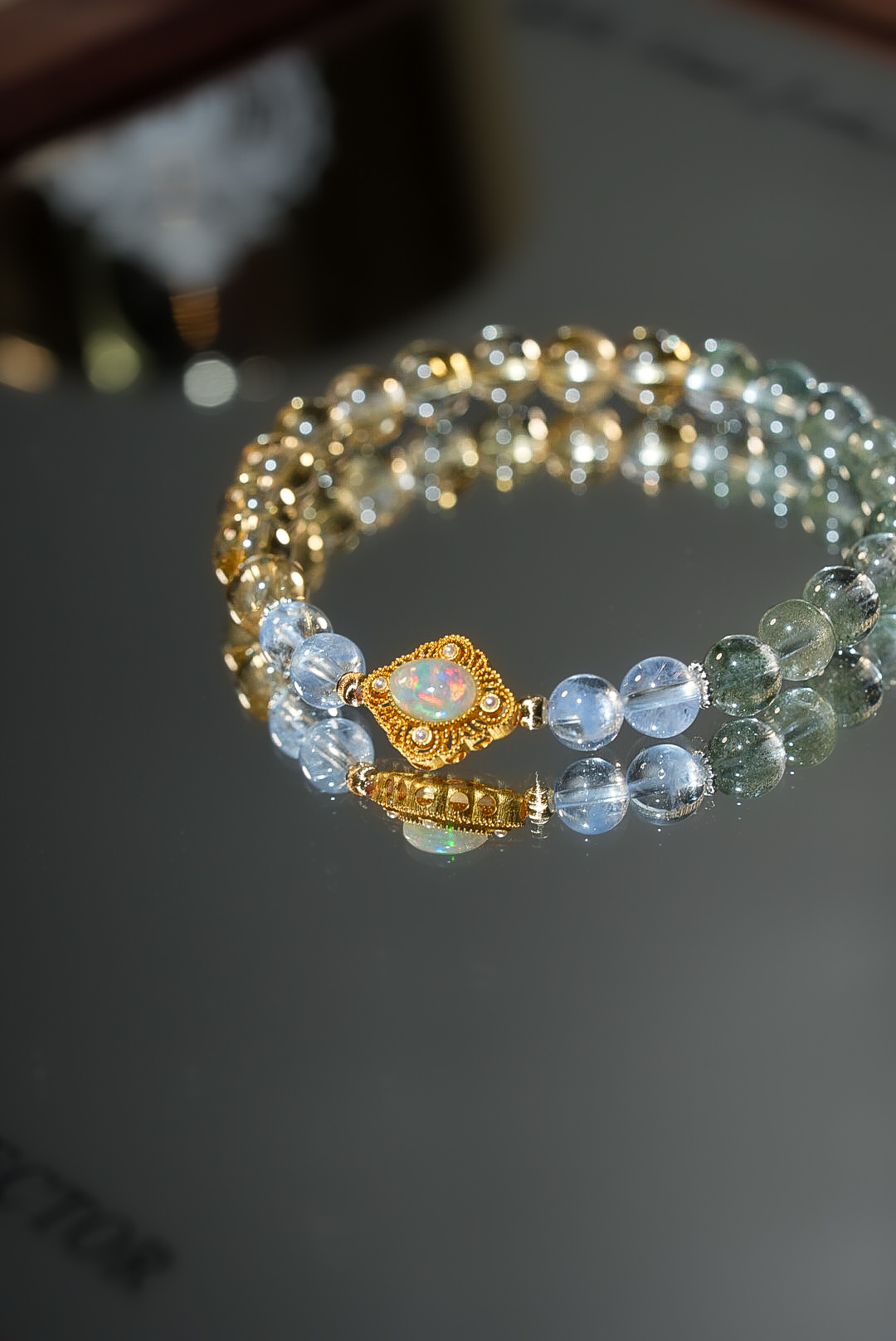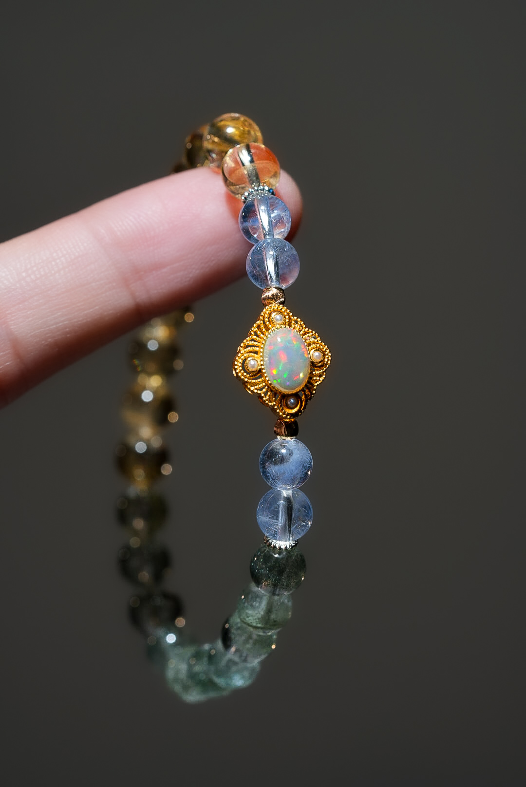 【靈感突圍.顯化全域】 Rosa.G 鑲嵌歐珀 x 綠幽靈 x 黃水晶 x 藍線石設計手