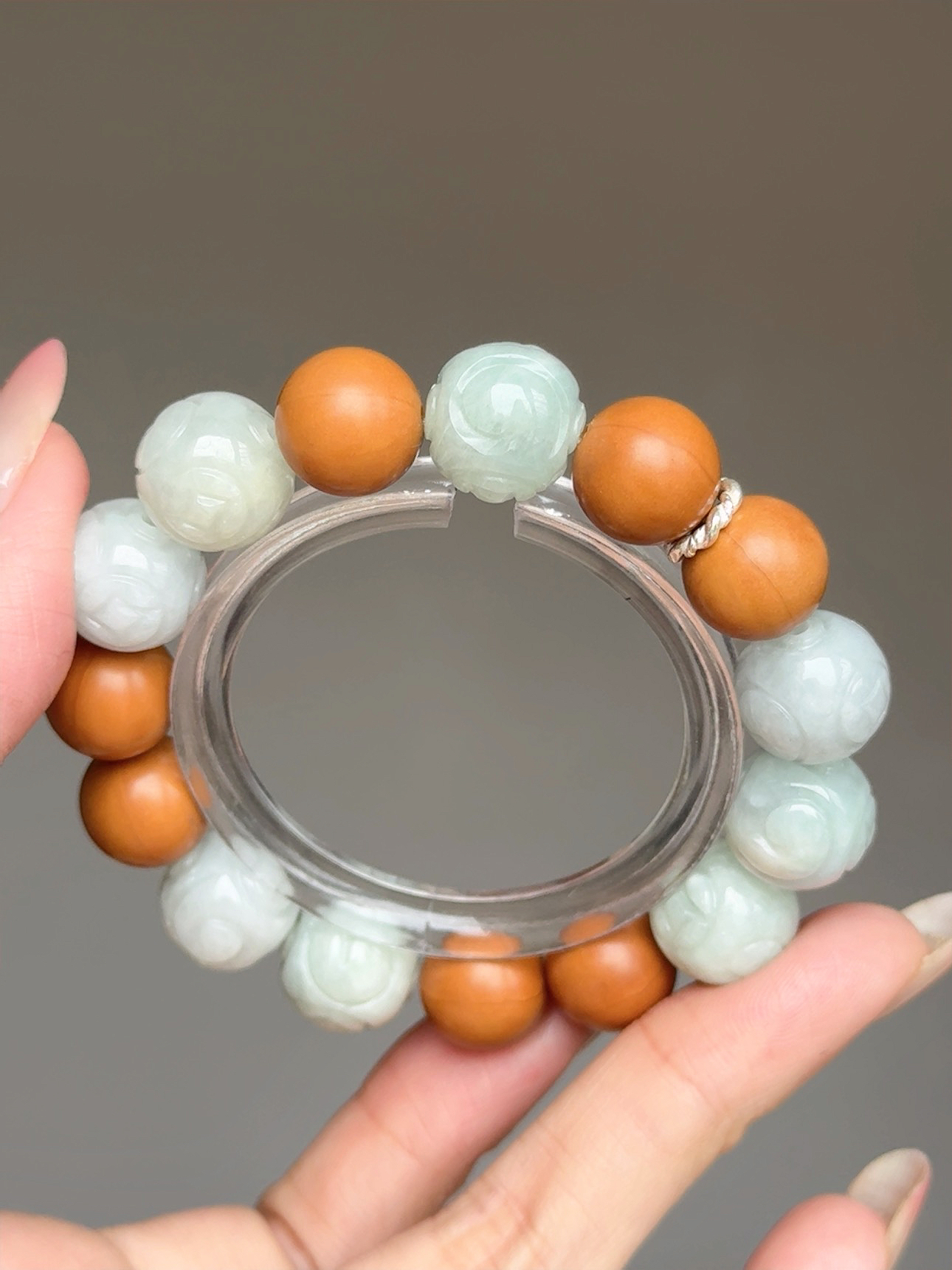 【靈犀佈局.金錢歸位】 Rosa.G 翡翠錢幣 x 天然猴頭核桃精雕手鍊